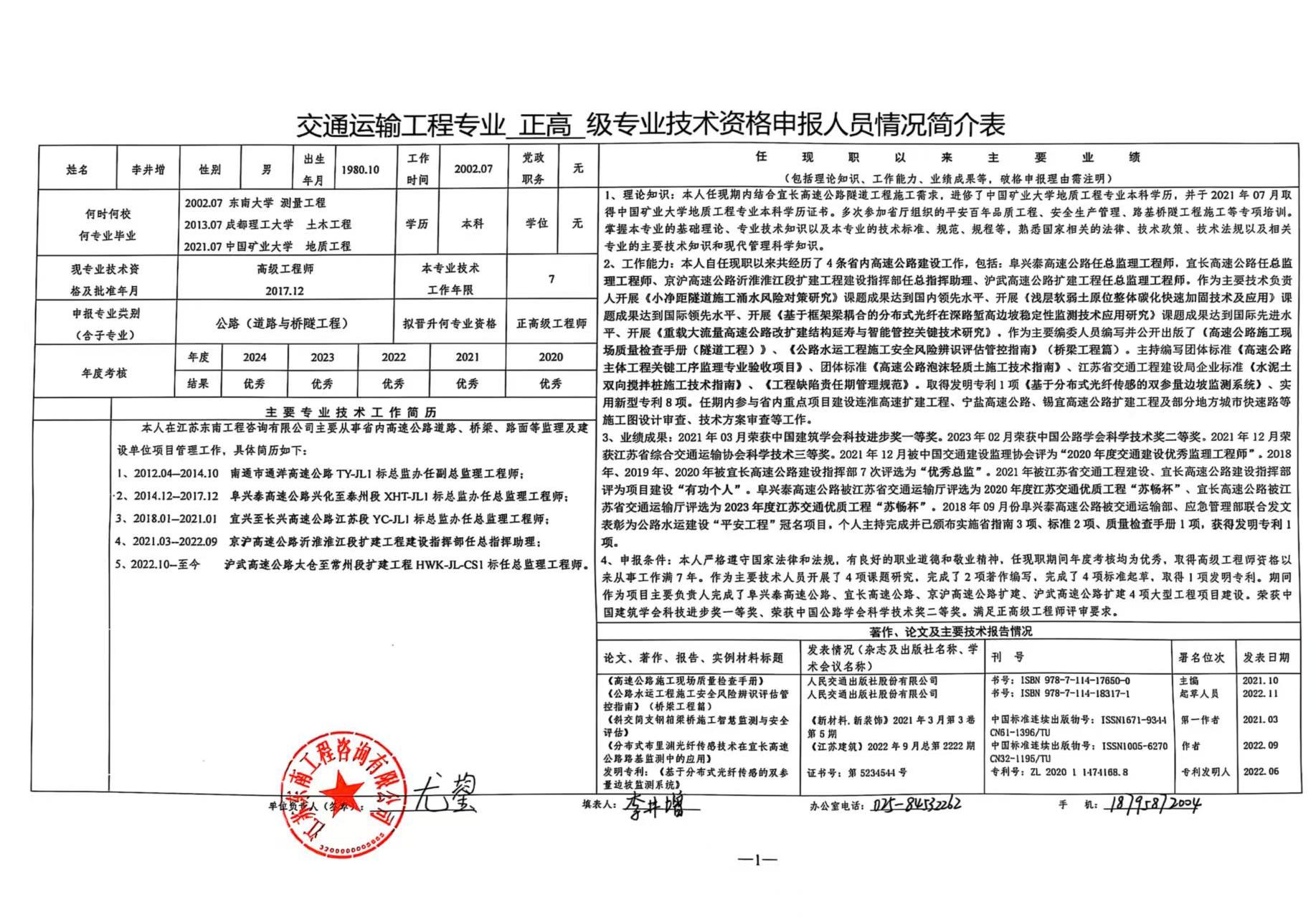 根據(jù)《江蘇省交通運(yùn)輸工程專業(yè)技術(shù)資格條件(試行)》規(guī)定,2025年度有李井增同志擬申報江蘇省交通運(yùn)輸廳交通運(yùn)輸工程公路(道路與橋隧工程)專業(yè)正高級工程師。為體現(xiàn)公開、公平、公正原則,廣泛聽取群眾意見,現(xiàn)將擬申報人員信息予以公示。