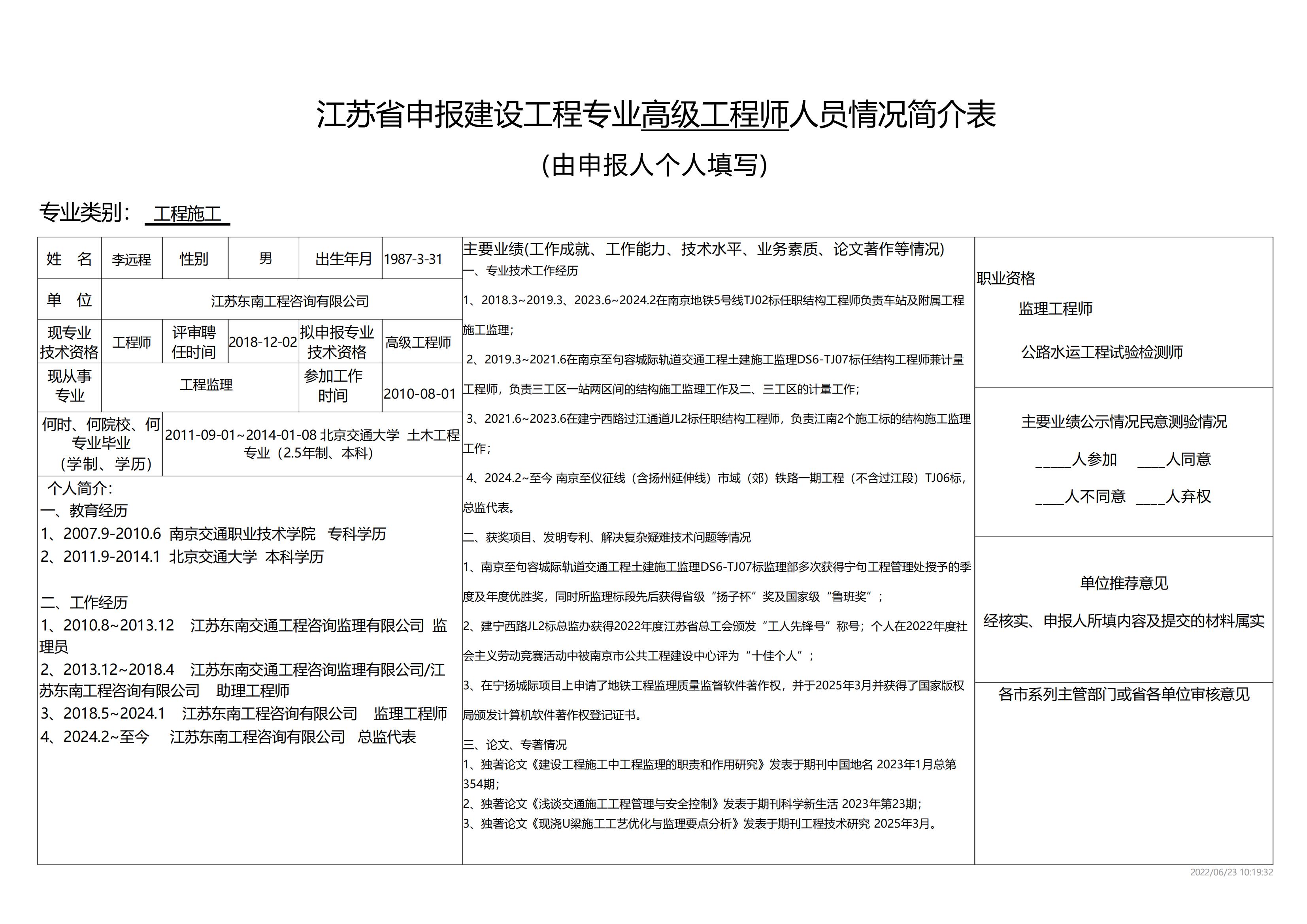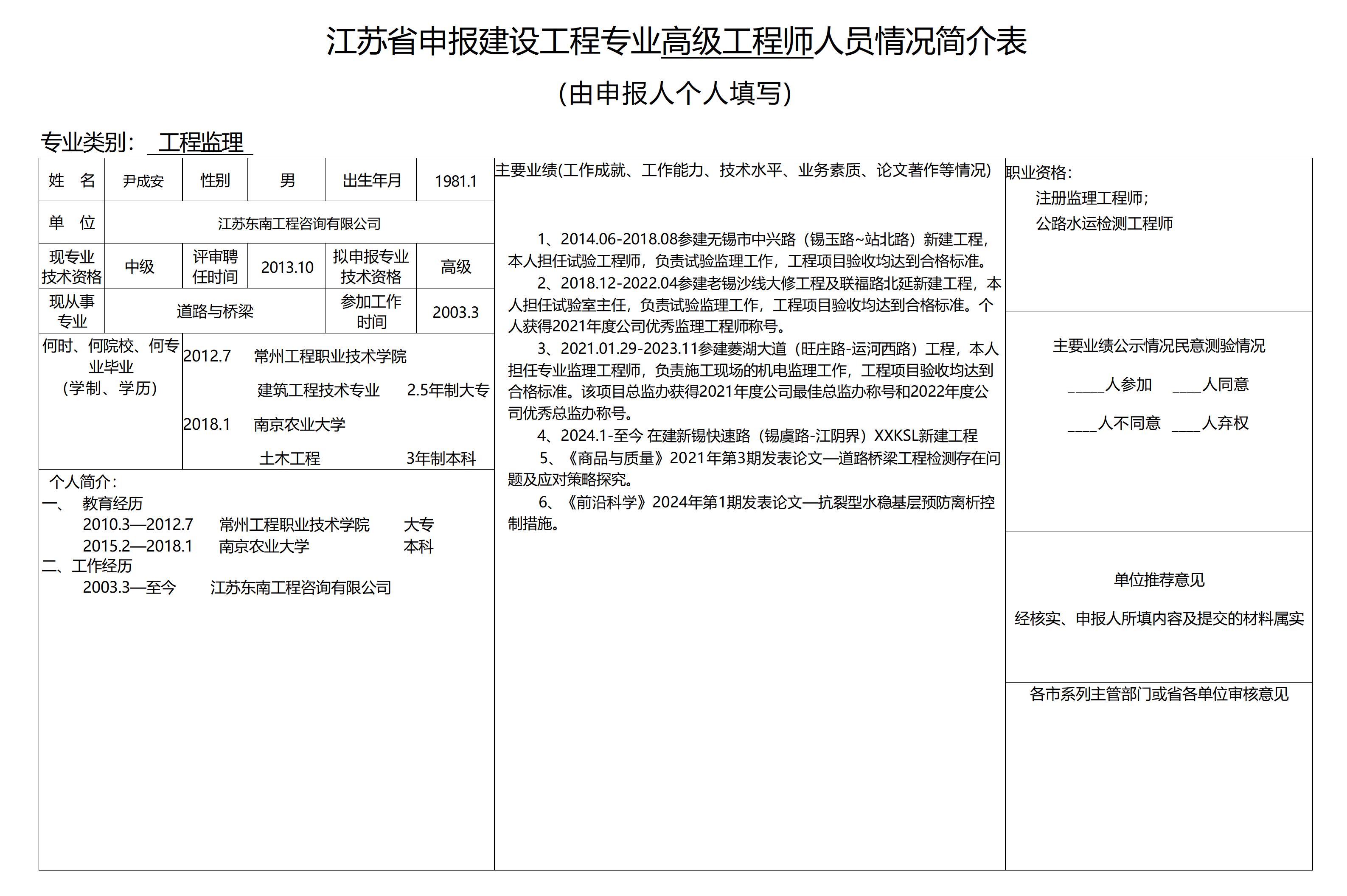 根據(jù)《江蘇省建設(shè)工程專業(yè)技術(shù)資格條件(試行)》規(guī)定,2025年度有林蘊(yùn)韜等11名同志擬申報(bào)江蘇省住房和城鄉(xiāng)建設(shè)廳建設(shè)工程專業(yè)高級工程師。為體現(xiàn)公開、公平、公正原則,廣泛聽取群眾意見,現(xiàn)將擬申報(bào)人員信息予以公示。